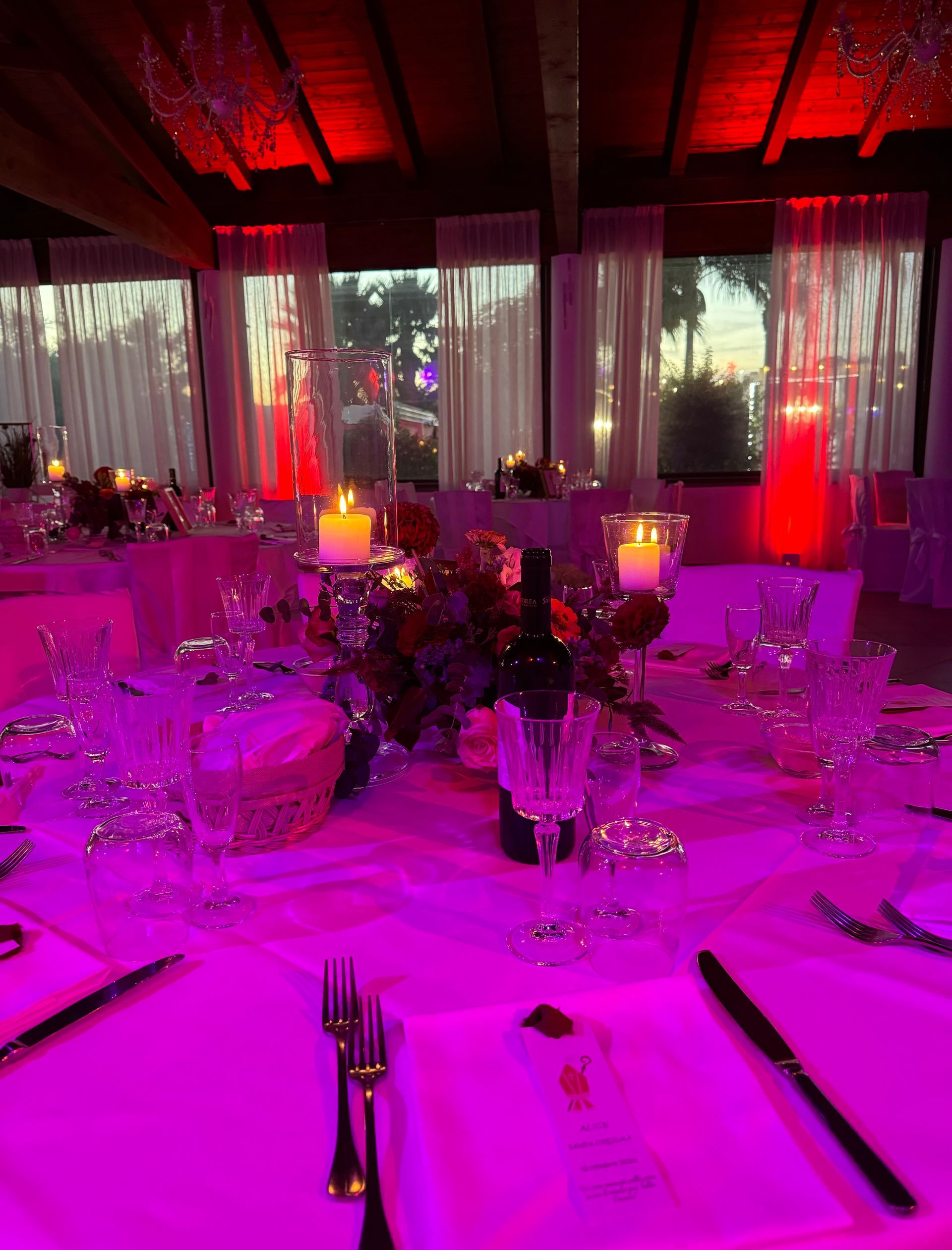 La struttura è costituita da due sale interne. Una sala è dedicata a cerimonie intime con un numero ridotto di ospiti; mentre l’altra sala, che si affaccia direttamente sul giardino con piscina, è a disposizione di cerimonie con un numero maggiore di ospiti. E', inoltre, possibile allestire banchetti a bordo piscina, se la stagione lo consente. Nel caso di matrimoni, è possibile, allestire un buffet di antipasti a bordo piscina e in tutto il giardino.