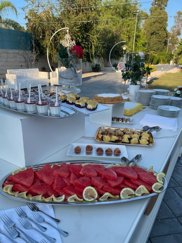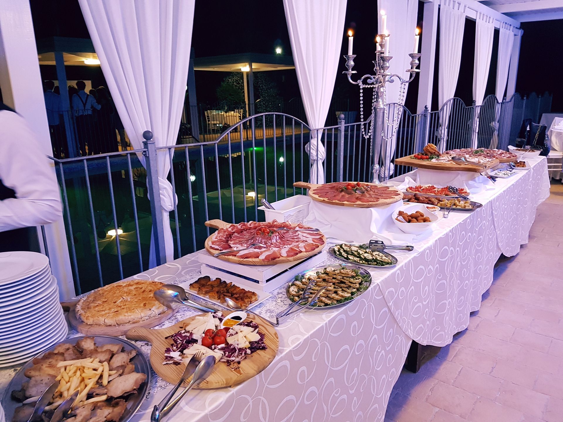 Nel caso di matrimoni, è possibile, allestire un buffet di antipasti a bordo piscina e in tutto il giardino.